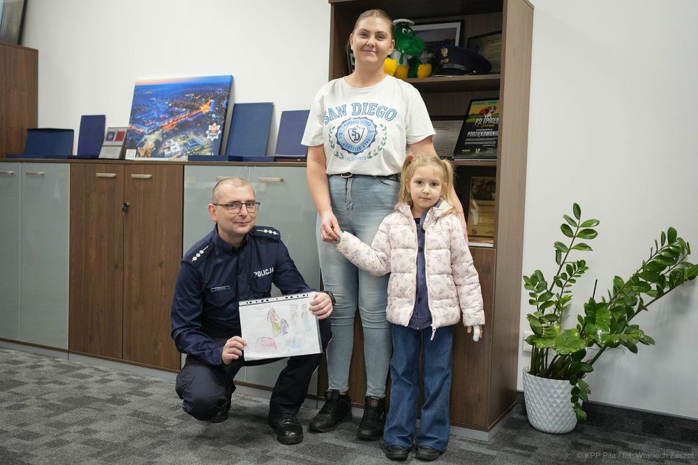 W środę mała pacjentka wraz z mamą odwiedziły jednostkę aby osobiście podziękować za pomoc. Starszy aspirant otrzymał wiele ciepłych słów oraz symboliczny rysunek od dziewczynki. Komendant Powiatowy Policji w Pile oraz Naczelnik Wydziału Prewencji dołączyli życzenia zdrowia i przekazali skromny upominek.