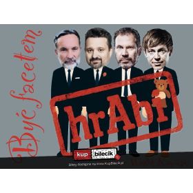bilety: My, Kabaret hrAbi, wobec ostatnich trudnych wydarzeń postanowiliśmy zachować się jak mężczyzna. Dlaczego? Bo Aśka by tak chciała. Wracamy z programem o mężczyznach, poświęconym mężczyznom, granym przez mężczyzn, ale - uwaga - dla wszystkich, bo kto jak nie kobiety najlepiej wie, z czym to się je (i z kim żyje)! Kabaret hrAbi & Wojtek Kamiński artyści: Joanna Kołaczkowska, Dariusz Kamys, Tomasz Majer, Łukasz PietschJeden z najdoskonalszych i najbardziej cenionych współczesnych kabaretów. Zielonogórsko-warszawski kabaret powstał w 2002 roku i ma na koncie kilka udanych programów, które zakończyły się nagraniami DVD. Członkowie kabaretu są ze sceną kabaretową związani od lat, wcześniej cześć z nich występowała np. w Kabarecie Potem czy Kabarecie HiFi. Mimo iż nie są częstymi bywalcami telewizyjnych programów kabaretowych, sale podczas ich występów zawsze pękają w szwach. Utrzymują od lat bardzo wysoki poziom prezentowanego humoru, który szybko przypada do gustu każdemu, bez względu na wiek czy poglądy. Pośród innych kabaretów wstawiani są jako wzór kabaretu idealnego! Bilety do nabycia na: KupBilecik.pl |