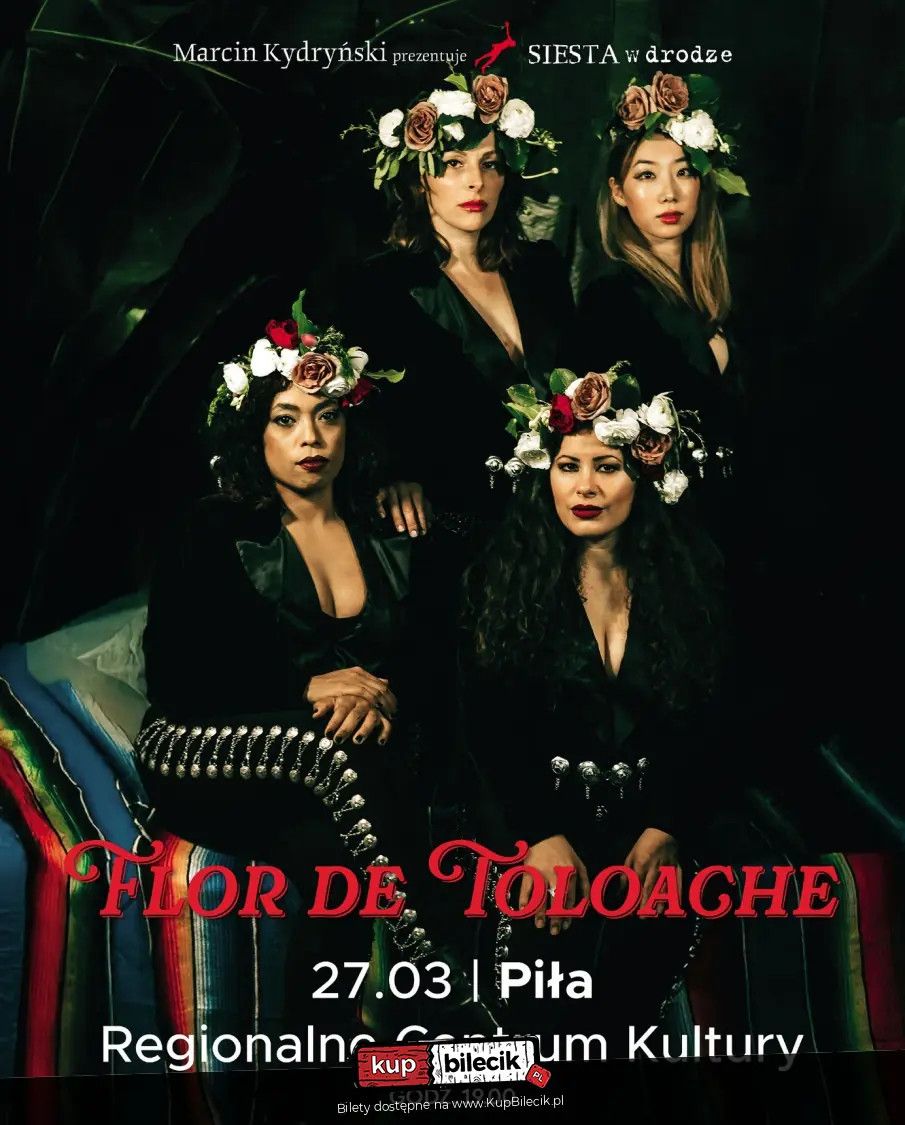 Flor de Toloache - wielokrotnie nagradzana żeńska grupa muzyczna mistrzowsko łączy tradycję z innowacją, przełamując granice dzięki wielowymiarowemu, odważnemu i świeżemu podejściu do tradycyjnej muzyki latynoamerykańskiej. Niczym legendarny eliksir miłosny, do którego w Meksyku używa się kwiatu toloache, ten utalentowany zespół z Nowego Jorku urzeka publiczność potężnymi głosami i wyjątkową elegancją sceniczną. Członkinie pochodzą z różnych środowisk kulturowych, takich jak Meksyk, Puerto Rico, Dominikana, Kuba, Nikaragua i Stany Zjednoczone. Różnorodność etniczna i zróżnicowane doświadczenia muzyczne członkiń przekraczają granice kultury i płci. Grupa podbiła międzynarodowe sceny od Meksyku po Japonię i intensywnie koncertowała w miastach Stanów Zjednoczonych, Europy i Ameryki Łacińskiej. Bilety do nabycia na: